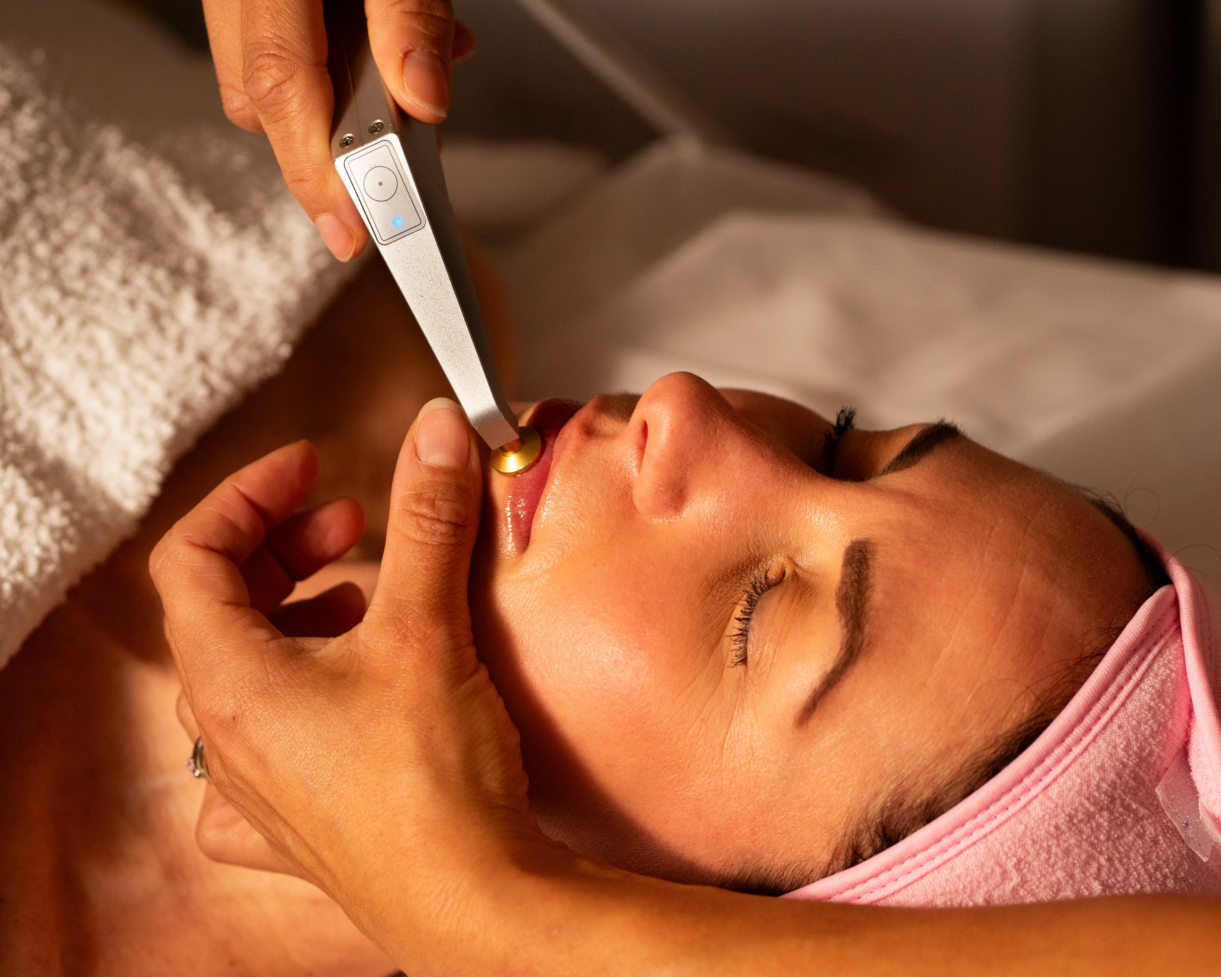 Concentrated active ingredients, tailored to individual skin needs, are pulsed deeply into the skin using oxygen pressure. This creates a deposit in the deep skin layers, promoting skin plumping and delivering rapid visible results.